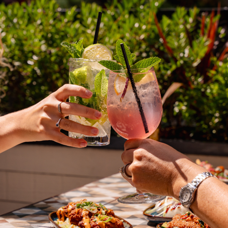 In case you’re hungry, we serve Pan-Asian Inspired Small Plates, Artisan Sourdough Pizzas and Signature Bowls. And don’t worry, we have plenty of delicious options for our vegetarian and vegan guests.