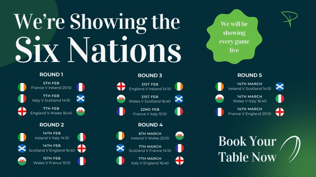 We’re showing every Six Nations match live, from the opening fixtures right through to the final weekend. Grab a table, settle in and watch all the action with great food, drinks and atmosphere throughout the tournament. Book your table now to make sure you don’t miss a game.