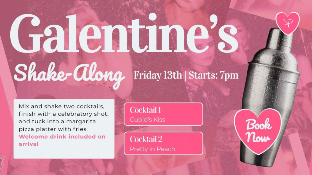 Ditch the typical Valentine’s plans and shake things up with our Galentine’s Shake- Along. Join us from 7pm for a hands-on cocktail session where you’ll mix and shake two cocktails, enjoy a celebratory shot, and tuck into a margarita pizza platter with fries. A welcome drink is included on arrival — bring the girls and make a night of it.